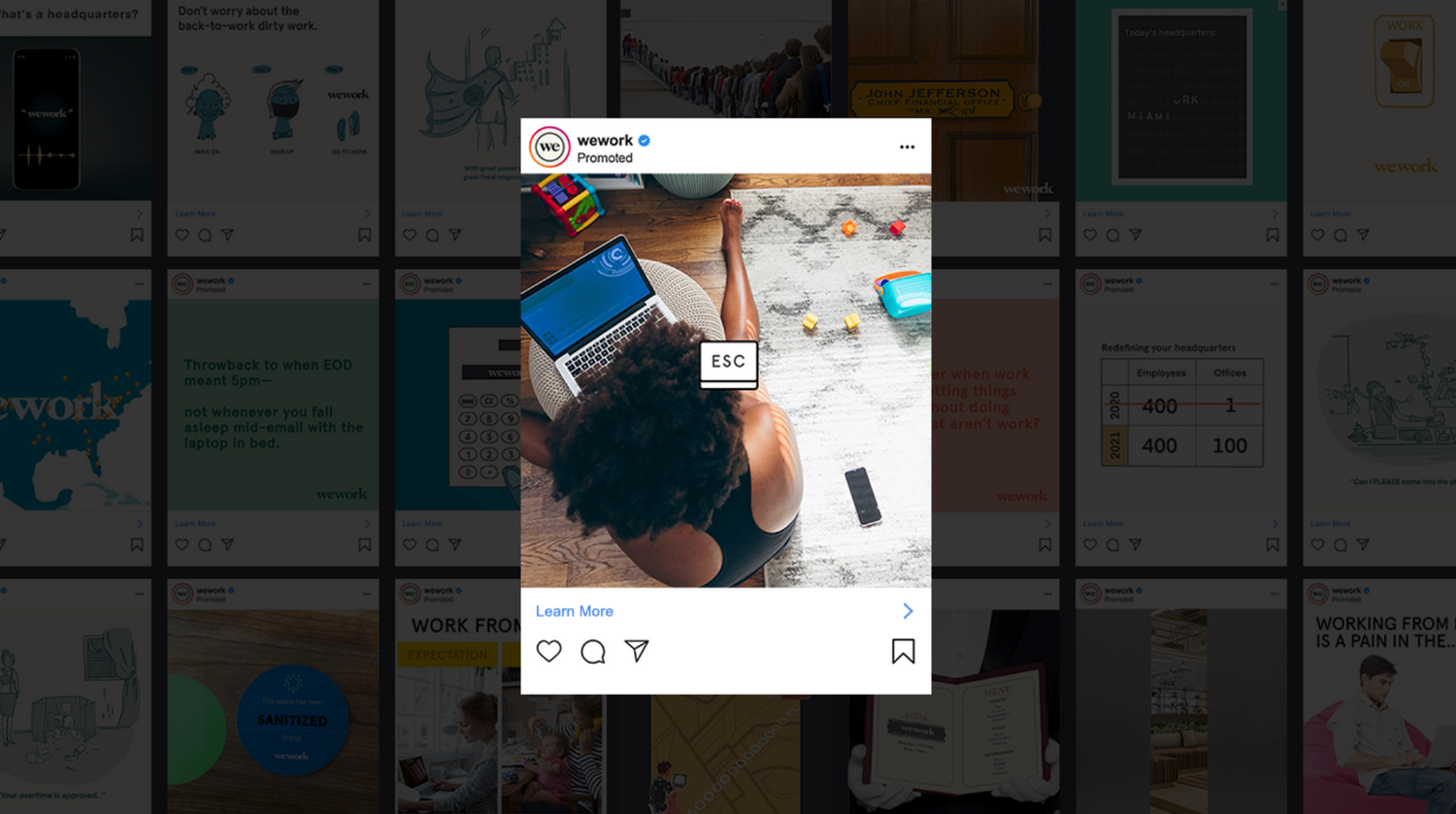 As the lead writer on WeWork’s first big advertising initiative, I wrote, developed and produced nearly one hundred bespoke ads for all of their social and digital media, together with my Art Director, of course.